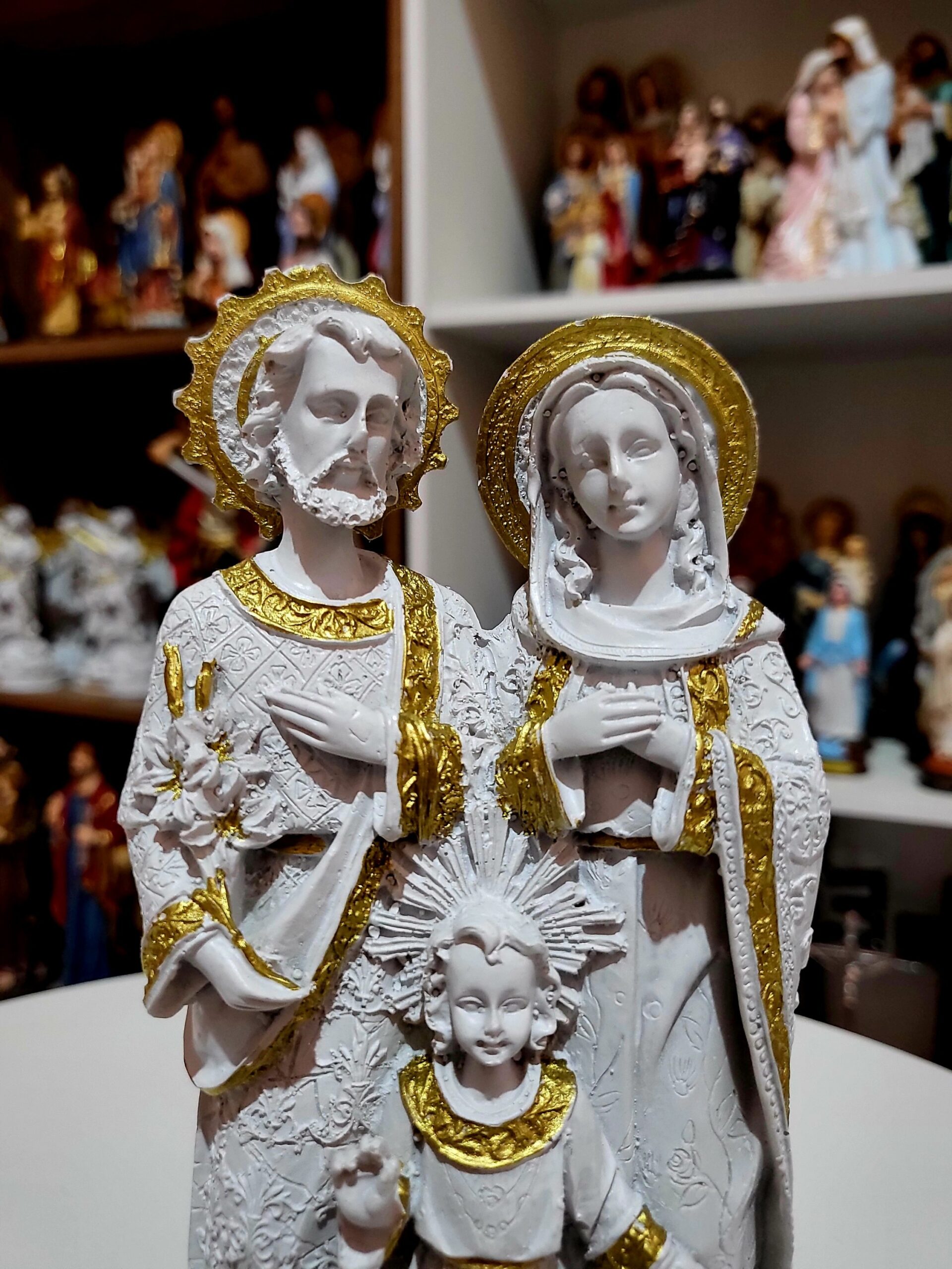 Imagem Sagrada Família ( branca e dourada ) 20cm resina