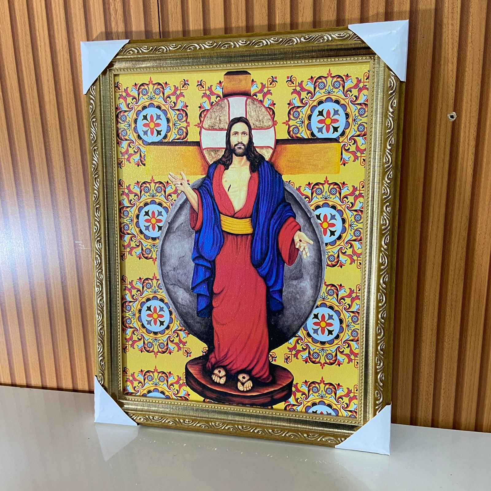 Quadro com moldura resinado Santa Chagas