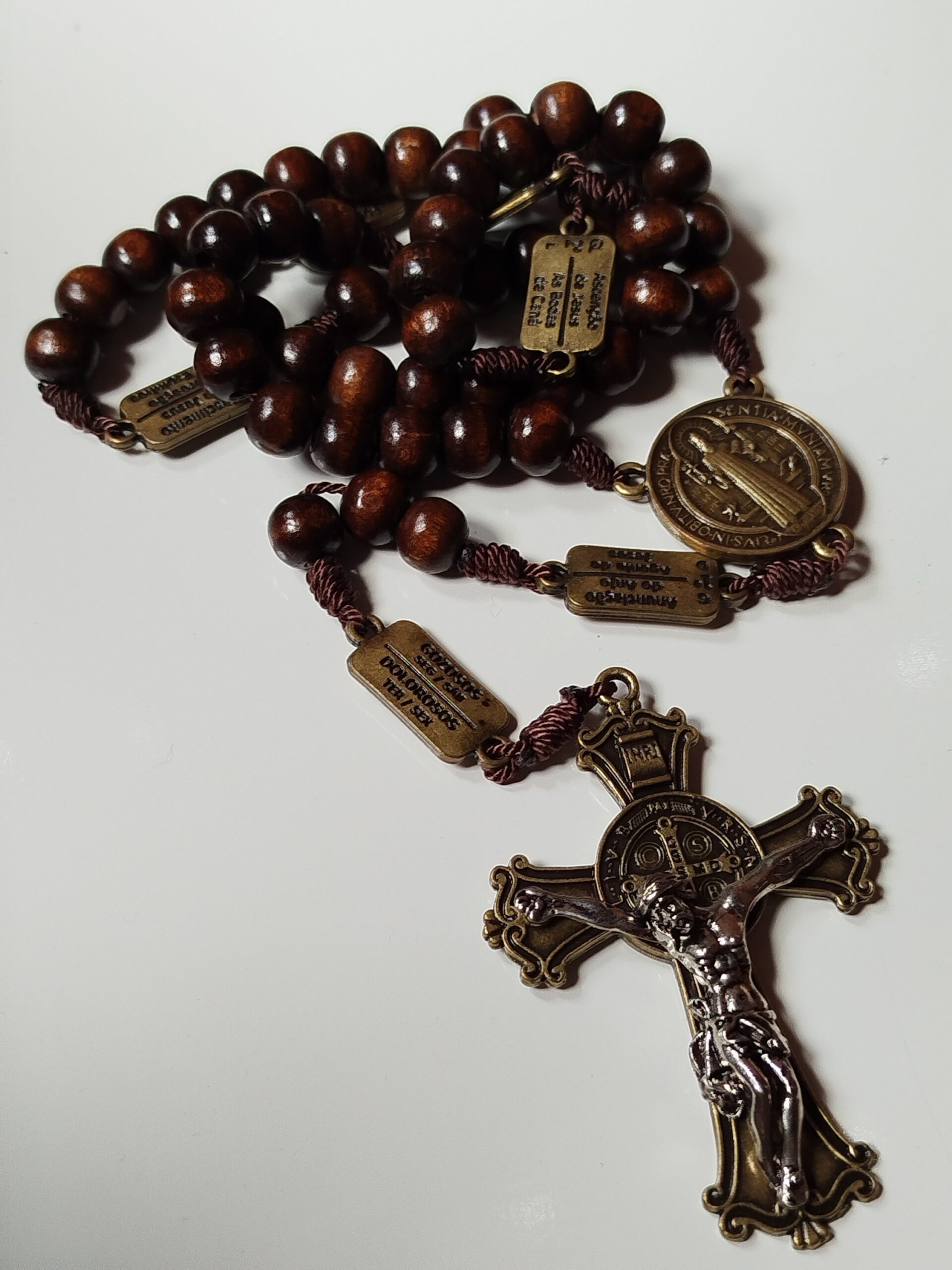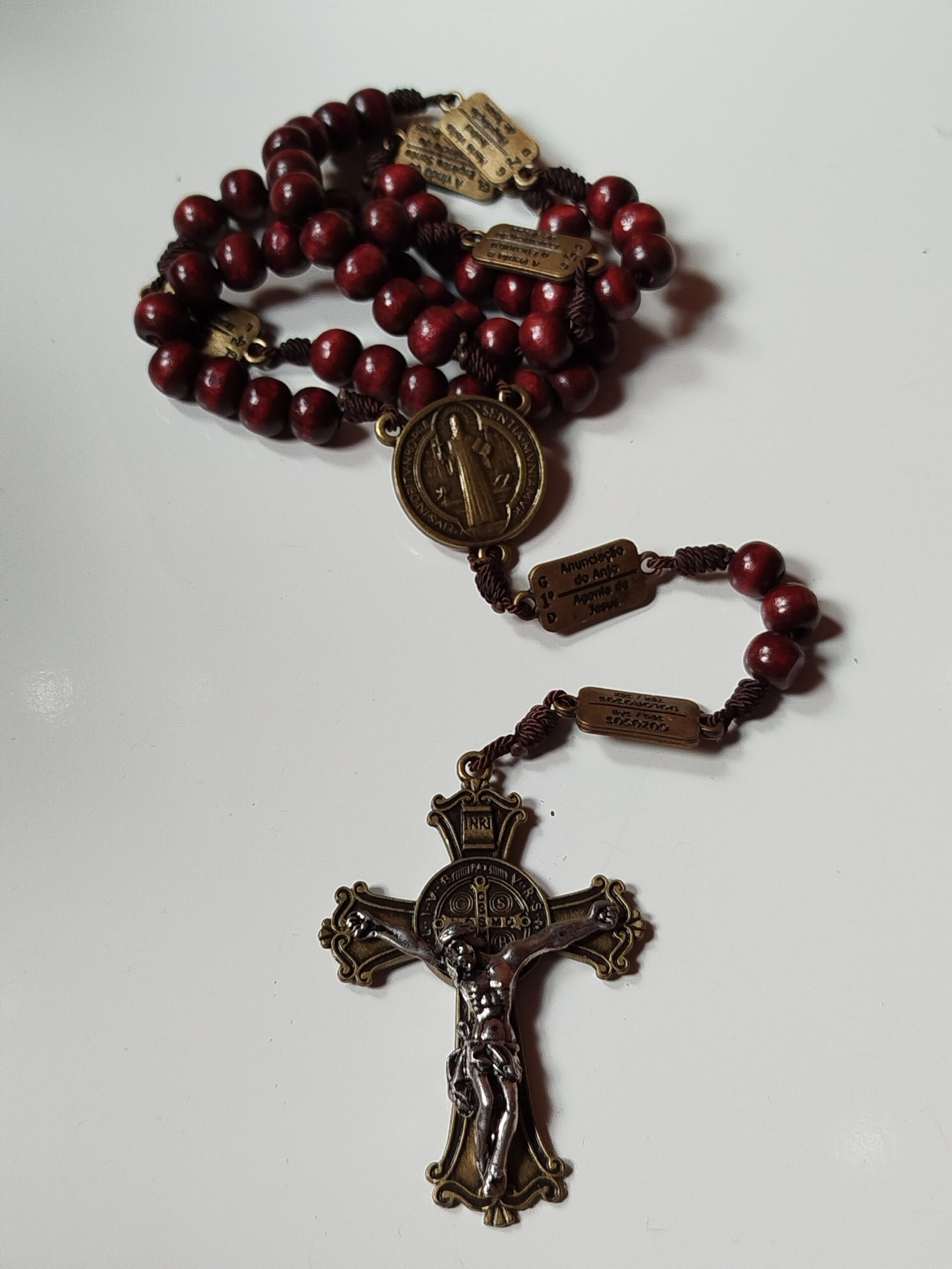 Terço da contemplação dos mistérios em madeira- marrom escuro
